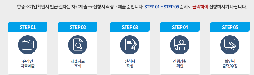 자료 제출 완료 후, '중소기업확인서 발급 신청 > 신청서 작성 후 제출' 하면 됩니다.