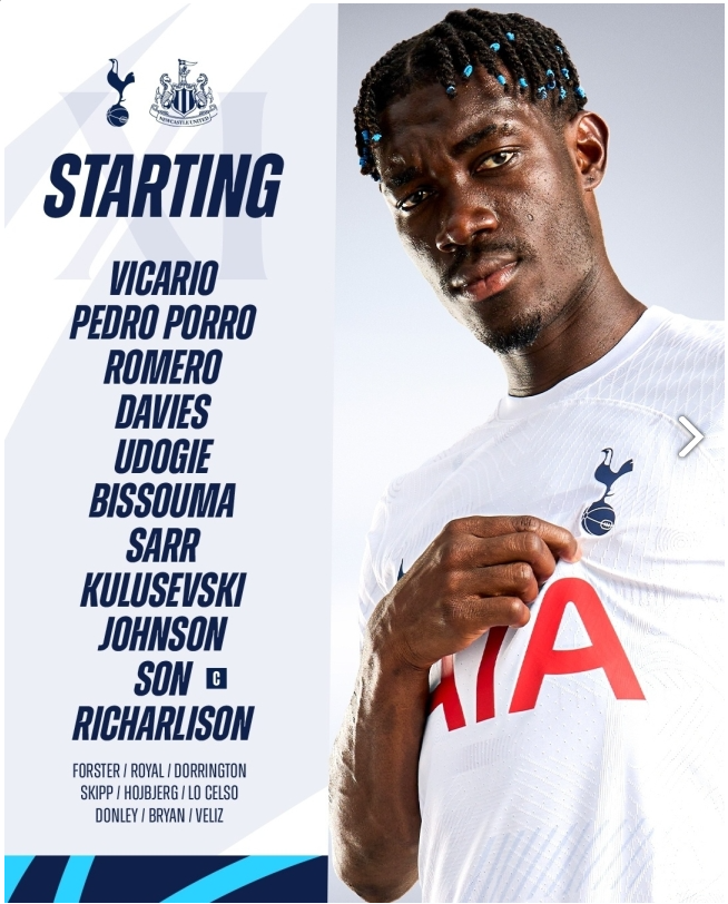 포스테코글루 감독은 개막 이후 줄곧 최전방 스트라이커로 뛰었던 손흥민을 이날 왼쪽 측면 공격수로 기용했다. 대신 선발 명단에 복귀한 히샬리송이 최전방 공격수로 나섰고 브레넌 존슨이 오른쪽 날개로 출전했다. 제임스 매디슨이 빠진 공격형 미드필더 자리엔 데얀 쿨루셉스키와 지오바니 로셀소를 번갈아 썼는데 이날 경기에선 쿨루셉스키를 선택했다.